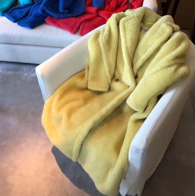 100% Alpaca Real Fur Coat Women Winter Suit Collar Long Nature Teddy Bear Fur Coats Overcoat Female Genuine Furs Jacket